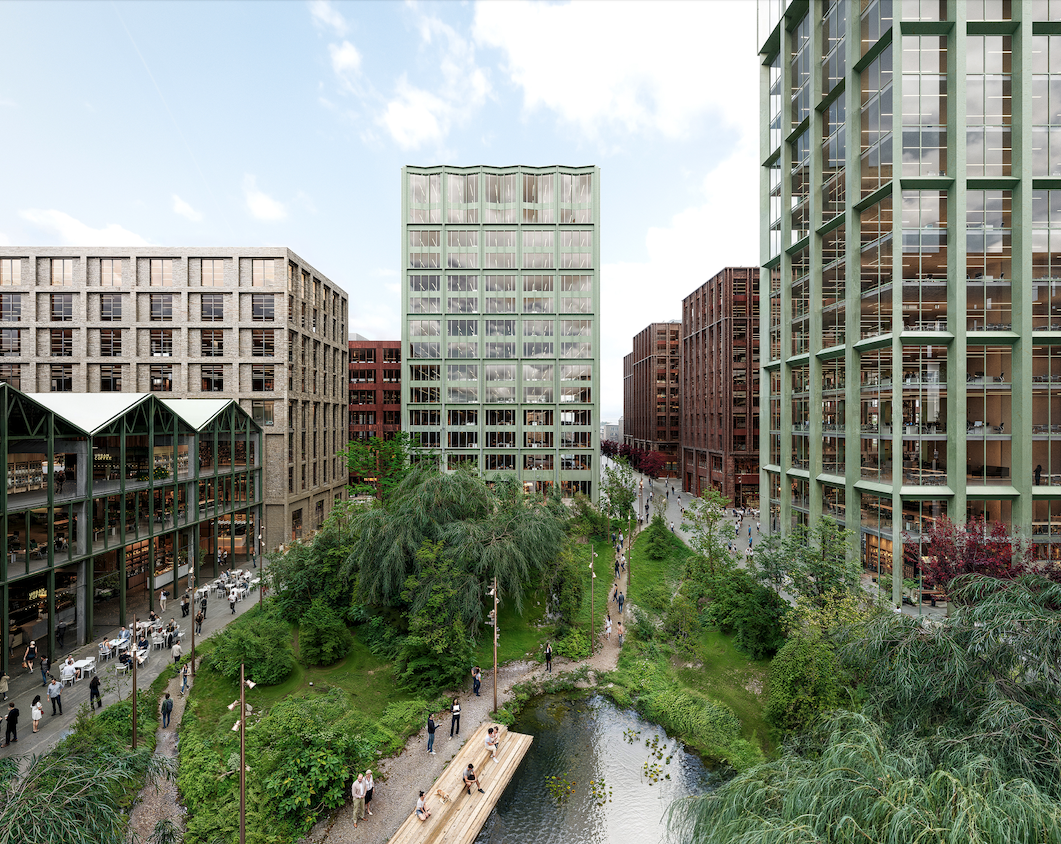 Over the next few years, a lively, urban commercial district will be developed alongside the Volkspark Humboldthain in Berlin-Mitte, spanning an area the size of nine football pitches.